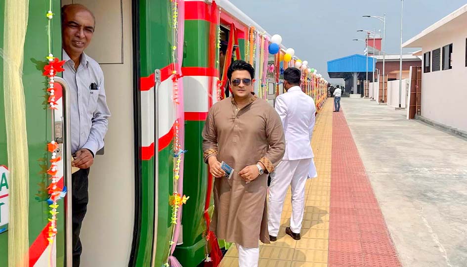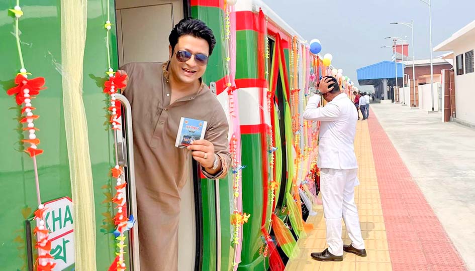 ট্রেনে করে পদ্মা সেতু পাড়ি দিয়ে দুপুর ২টার সময় প্রধানমন্ত্রীর সঙ্গে ভাঙ্গা রেলস্টেশনে পৌঁছান চিত্রনায়ক ফেরদৌস আহমেদ।